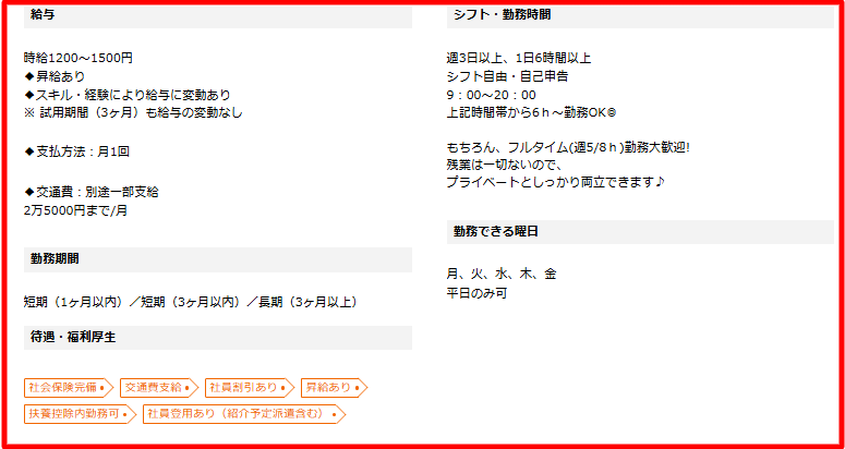 双方にとってベストな採用を実現するためにも、実際の仕事内容や職場の雰囲気と合った原稿内容になっているかご確認ください。