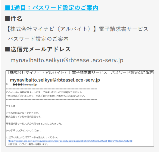 ■件名 「【株式会社マイナビ(アルバイト)】 電子請求書サービス パスワード設定のご案内」