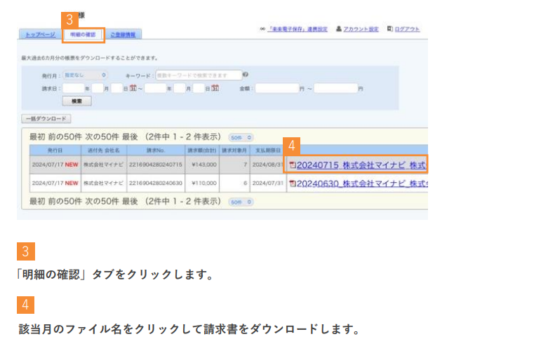 ▼請求書をダウンロードします(携帯電話/スマートフォンの場合)