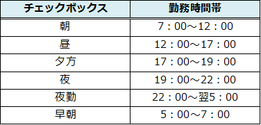 実働時間はシフトで入力した時間と整合性をもたせてください。